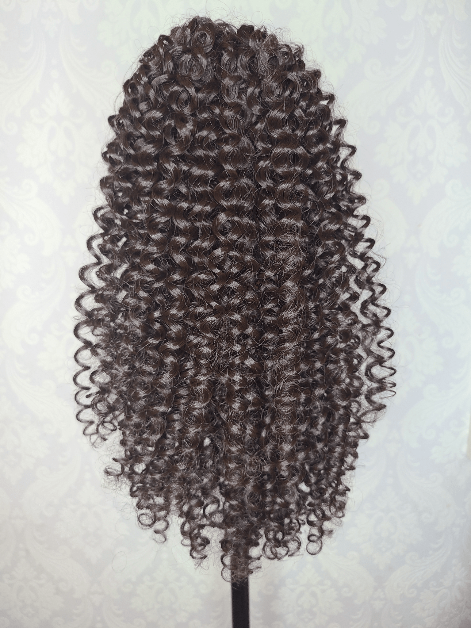 Embrace The Stephanie—a uniquely curly chocolate-brown ponytail that’s all about eye-catching texture, making every day feel a bit more magical.